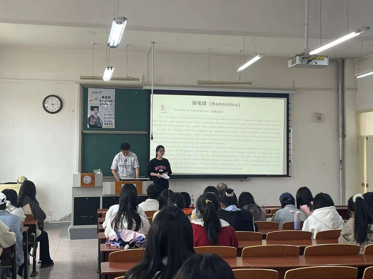 2024年4月12日下午,由bv伟德国际1946精心策划,老员工师苑社负责承办的“英语角”活动在八教107教室如期举行。本次活动荣幸地邀请到bv伟德国际1946外籍教师、多位指导教师莅临指导,师苑社全体成员以及英语222班全体同学亦踊跃参与。本次“英语角”活动以现代体育运动为主题,旨在通过英语这一国际语言,对各类体育运动进行深入分析与探讨。